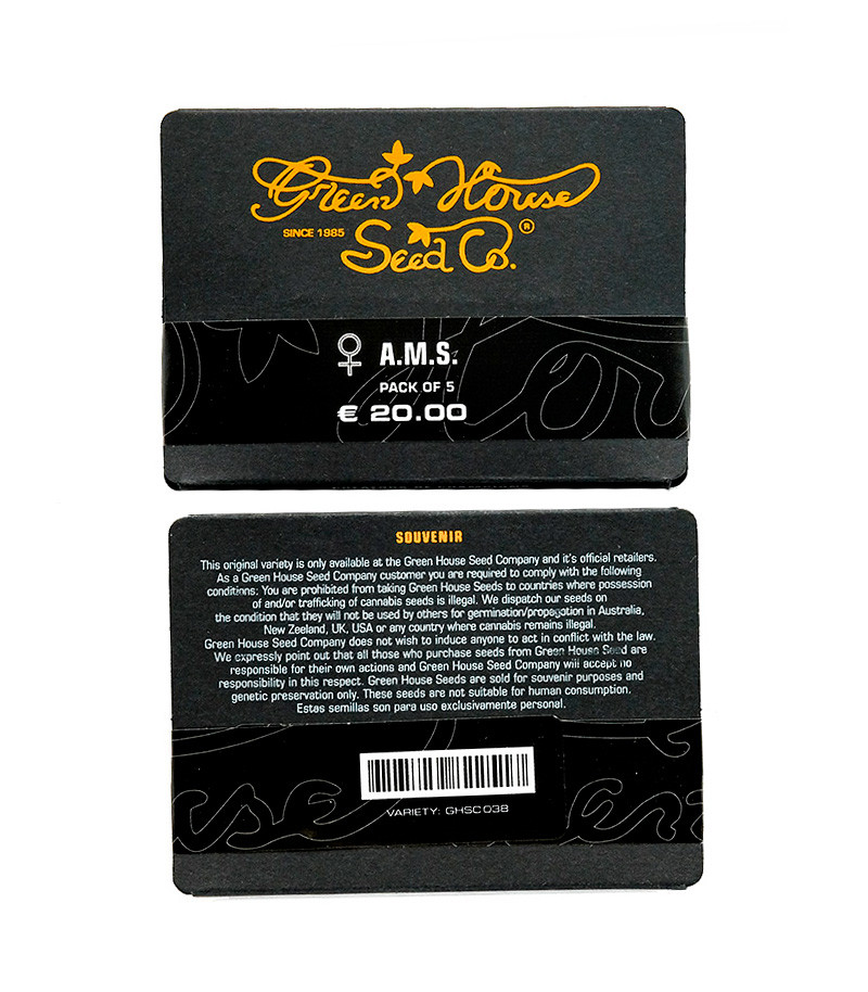AMS – феминизированный сорт с преобладанием индики. Отличается удивительной устойчивостью к плесени. Именно это и означают инициалы A.M.S. – Anti-Mold-Strain (анти-плесневый сорт).