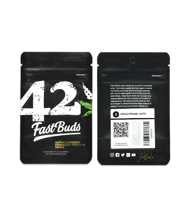 Кусты сорта имеют крепкую центральную колу с короткими междоузлиями и не слишком вытянутыми боковыми ветвями. Производитель рекомендует технику ScrOG и легкую дефолиацию раз в несколько недель, чтобы обеспечить лучшее проникновение света к внутренним почкам и предотвратить проблемы, связанные с застоем воздуха. Жизненный цикл Apple Strudel Auto составляет 9-10 недель, а урожайность стабильно высокая: 550 г/м² в помещении и до 250 г с одного растения в открытом грунте.