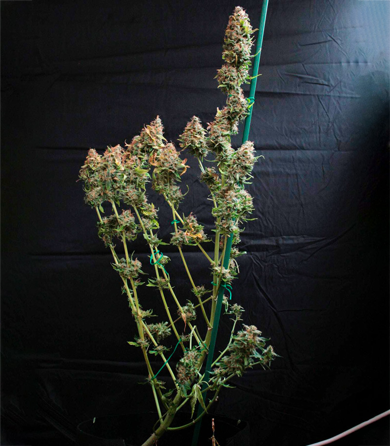 В ауте кусты чувствуют себя немного свободней, оттого вырастают выше. Средний размер растишек составляет 130-160 сантиметров. Длительность созревания на улице дольше, чем под лампами. В зависимости от погодных условий, растихи могут простоять и до ноября, прежде чем будут готовы к харвесту. При этом с одного куста снимают 200 грамм шишек.