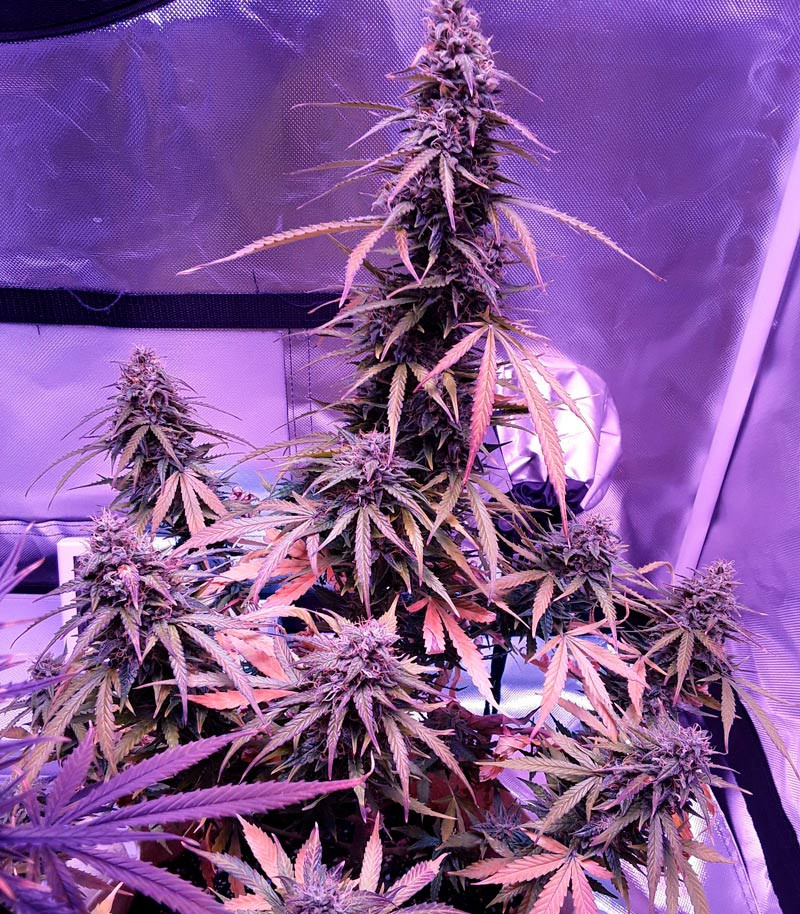 Растишка формируется в виде тучного кустика с одним основным стеблем и большим количеством листвы, которая во время роста приобретает темные оттенки. Почки очень плотные и в считанные дни покрываются трихомами и ароматной смолой. Размеры компактные, макушка никогда не вытягивается выше 170 сантиметров. Период цветения под лампой длится 6-8 недель в независимости от фотопериода. На улице сбор урожая начинается через 10-11 недель!