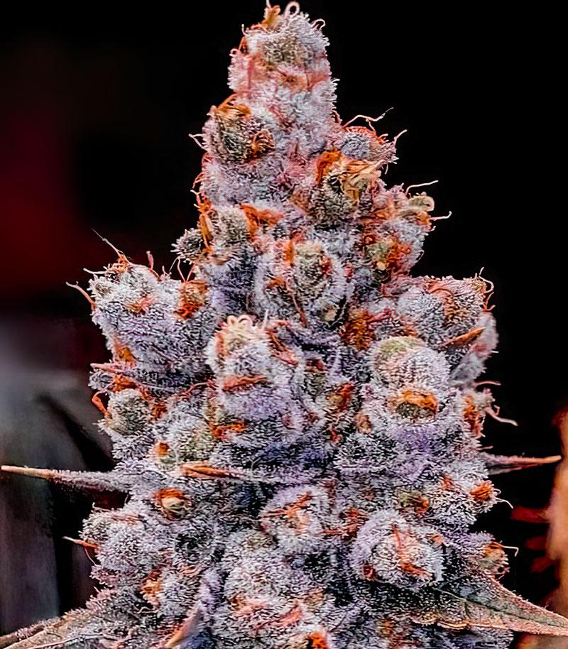 В ходе цветения автоцвет формирует очень фотогеничные шишки. Помимо специфичного синевато-фиолетового цвета завязей, они также покрываются огромным количеством трихом, от чего макушка куста выглядит заледенелой. Гибридное строение соцветий имеет классическую структуру с конусовидными кончиками. Среднего размера чашечки плотно прилегают друг к другу и выпускают длинные белые волоски, которые приобретают ржаво-коричневый цвет при дальнейшем созревании.
