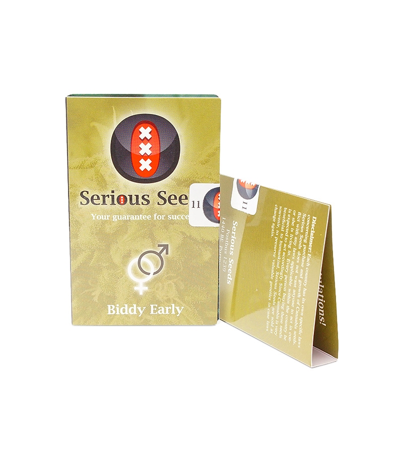 Biddy Early reg («Ранний Бидди») – регулярный сорт конопли с доминирующей сативой, который был выведен для выращивания в прохладных западно-европейских условиях с повышенной влажность. Сорт неоднократно становился призером на НTCC, HighLife Hemp Fair и IC-Mag 420.