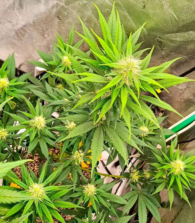 Сорт конопли Black Widow отличается выносливостью и жизнелюбием. Он не нуждается в строгом контроле со стороны садовода, принося до 600 г заснеженных темных бутонов с каждого куста. Готовый продукт вмиг поднимает настроение, снимает тревожность и погружает тело в ванну из расслабленного спокойствия.