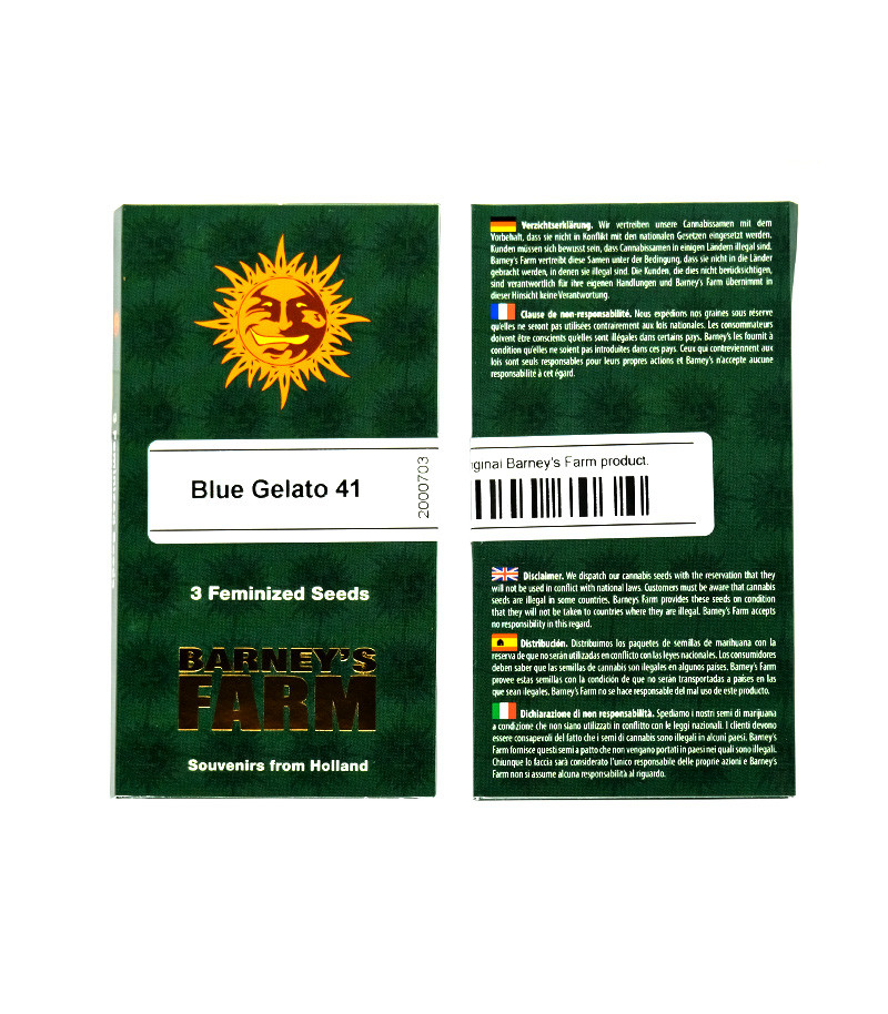 Сорт каннабиса Blue Gelato 41 удалось получить благодаря скрещиванию трех сортов: легендарного Blueberry, свежего Thin Mint Girl Scout Cookies и фруктовой индики Sunset Sherbert. Хотя ароматы «Джелато» опьяняют, воздействие обычно яркое и энергичное. При этом технически сорт относится к индика-доминантным, ведь на бодрящую сативу приходится только 40% генов.
