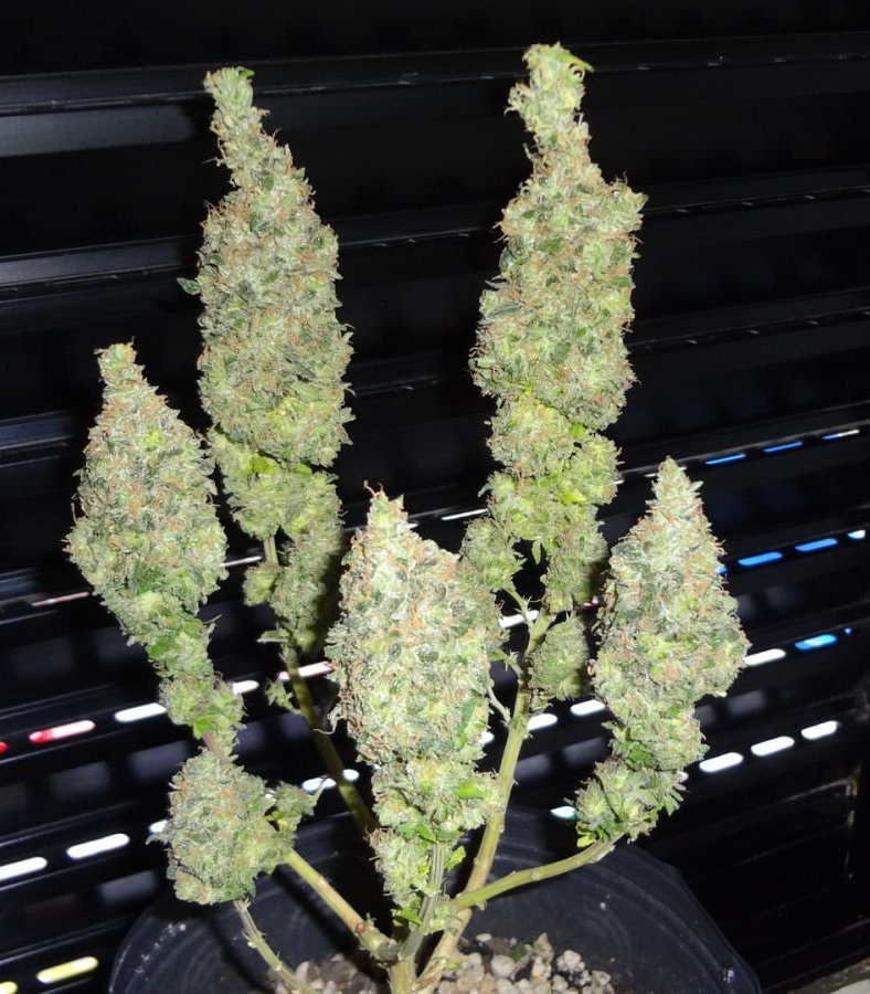 Взрослые кусты покрываются компактными, но очень плотными шишками, которые выделяют большое количество смолы. Фруктовый запах очень насыщенный, а вкус очень напоминает жвачку, знакомую каждому с детства.