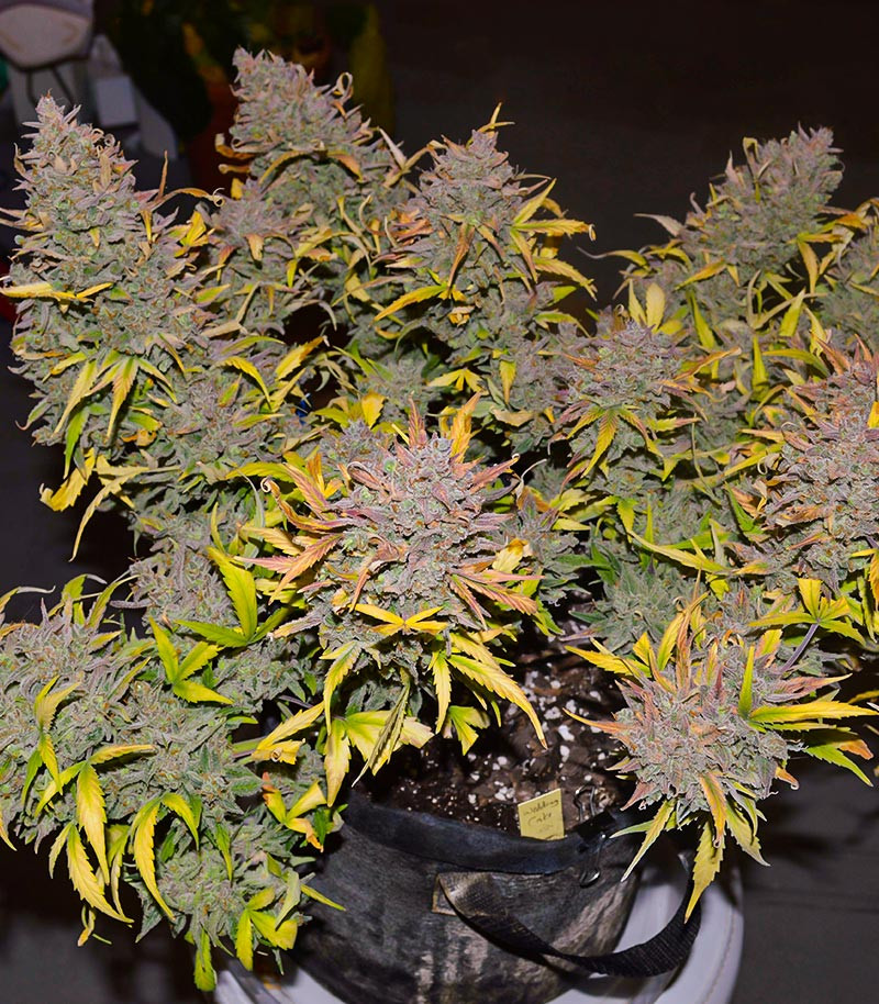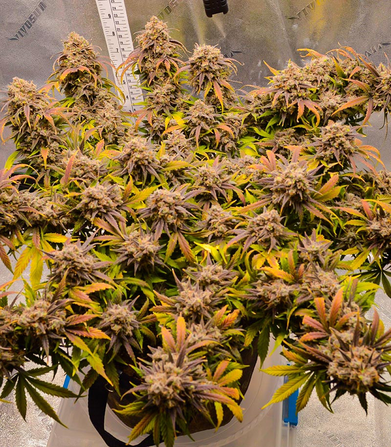 При выращивании в закрытых помещениях, возможно, придется прибегнуть к техникам контроля роста. Средняя высота кустов варьируется в пределах 110-140 см, но на тренировки с низким уровнем стресса растения реагируют послушно и быстро формируют желаемую структуру. Какого-либо особого ухода посадка не требует, с ней редко возникают какие-либо проблемы. Урожайность в индоре вполне соответствует коммерческим критериям: 500-600 г морозных шишек с 1 м2 полезной площади бокса. По мере созревания соцветия покрываются густым и морозно-белым слоем трихом. Они невероятно смолистые и отлично подходят для приготовления любого рода концентратов.