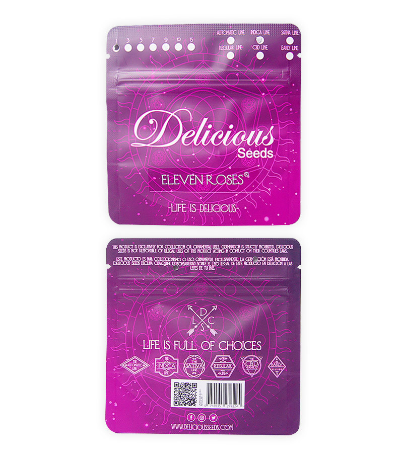 Сорт конопли Eleven Roses fem – актуальная новинка от испанского сидбанка Delicious Seeds, которая уже успела завоевать признание всего канна-сообщества. Эта фиолетовая красотка – настоящий монстр, который способен удивлять своими фееричными урожаями и мощным индичным воздействием.