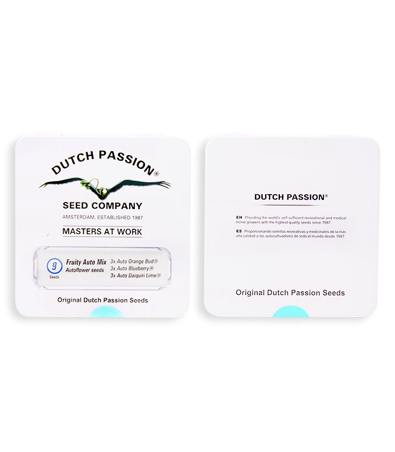 Микс конопли Fruity Autoflower Mix, включающий сатива- и индика-доминантные растихи, порадует ценителей истинного каннабиса потрясающим эффектом. Auto Orange Bud, Auto Blueberry и Auto Daiquiri Lime – сорта с лучшими ароматами от Dutch Passion, которые собраны в одном наборе.