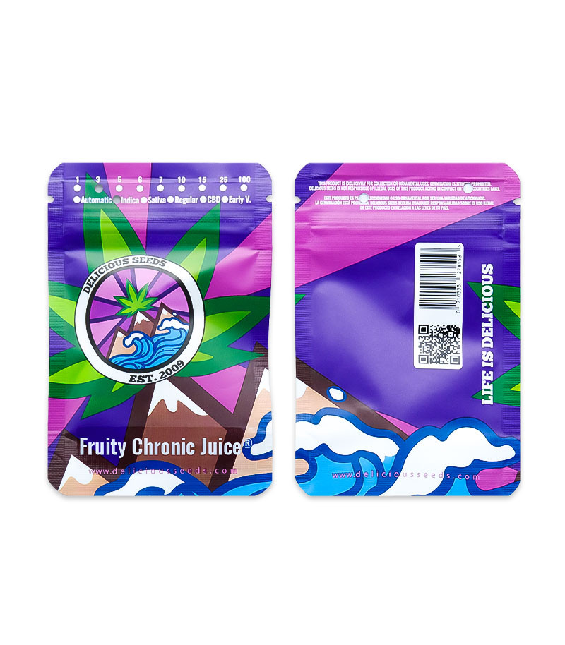 Однажды, селекционеры компании Delicious Seeds решили объединить энергичные свойства известного сорта Chronic с высоким лекарственным потенциалом легендарной White Widow. В результате на свет появился высокопроизводительный быстроцветущий сорт конопли Fruity Chronic Juice. За свои положительные качества гибрид получил: