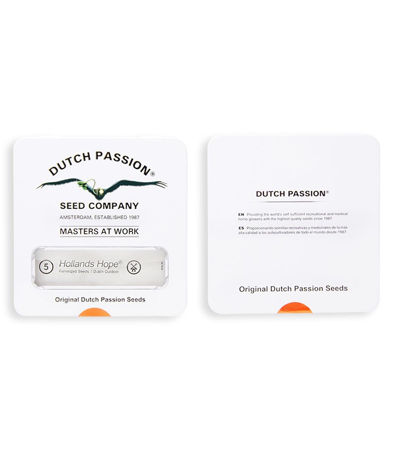 Hollands Hope («Голландская надежда») – сорт с доминированием свойств индики в своем составе, который идеально подходит для влажного и прохладного климата. Благодаря этому сорту, Dutch Passion попала в один из эпизодов голландского сериала, который так и назывался Hollands Hope. Кроме того, сорт является победителем в номинации «Лучший Hash» на конкурсе Copa Del Mar.