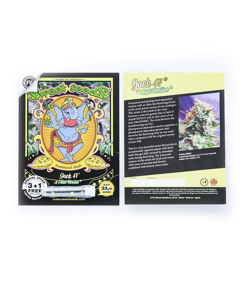 Феминизированная версия сорта Jack 47 с доминирующей сативой, представленная в его ускоренном варианте с фотопериодным цветением, отличается быстрым созреванием и свежим сладким ароматом с лимонными нотками лимона и оттенками ладана.
