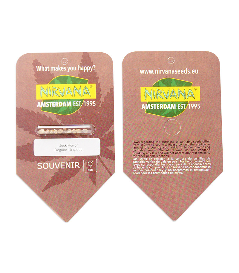 Регулярные семена этого сорта показывают хорошую всхожесть и предпочитают закрытый грунт. Jock Horror Regular – сативодоминантая марихуана, поэтому кусты вырастают достаточно высокими и требуют много пространства. Примечательно, что растишки созревают на несколько быстрее, чем оригинальный Jack Herer – цветение занимает 9-11 недель. Урожай в закрытом помещении составляет 350-450 грамм с одного квадратного метра растений. Во время цветения Jock Horror Regular источает приятный сладкий запах, в котором чувствуется ягодный аромат.