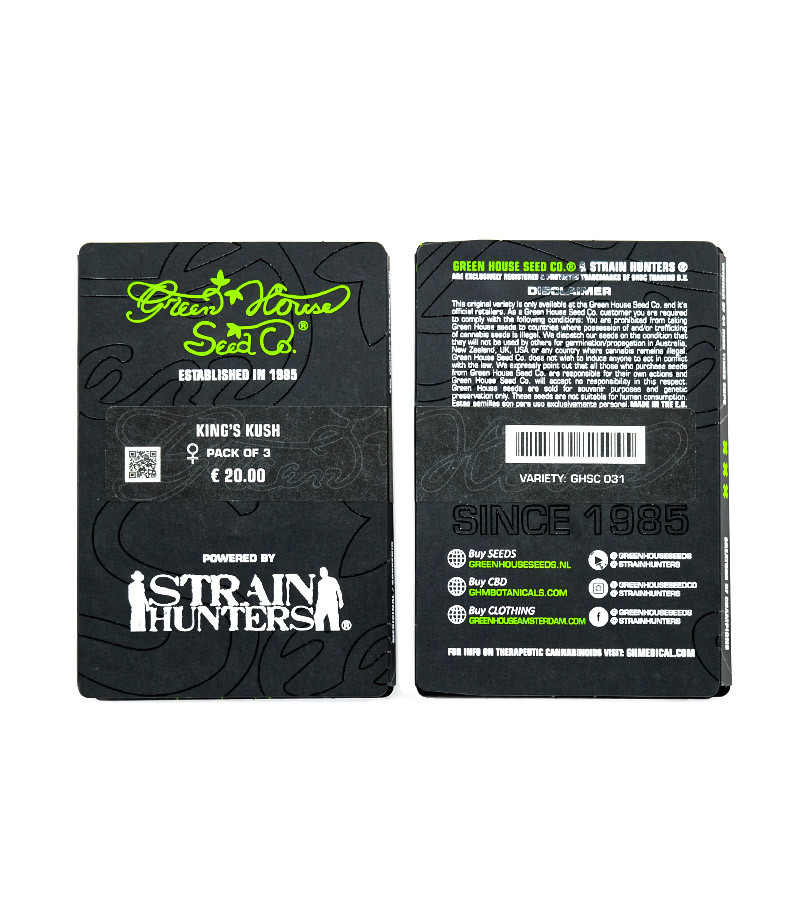 Генетика сорта Kings Kush происходит от скрещивания знаменитого OG Kush с известным фиолетовым сортом Grape. В результате получилось невысокое компактное растение с темно-зелеными широкими листья, способное к быстрому цветению и с преобладанием свойств индики. От OG Kush гибрид получил свой рост и внешний вид, а от Grape – вкус и фиолетовый оттенок.