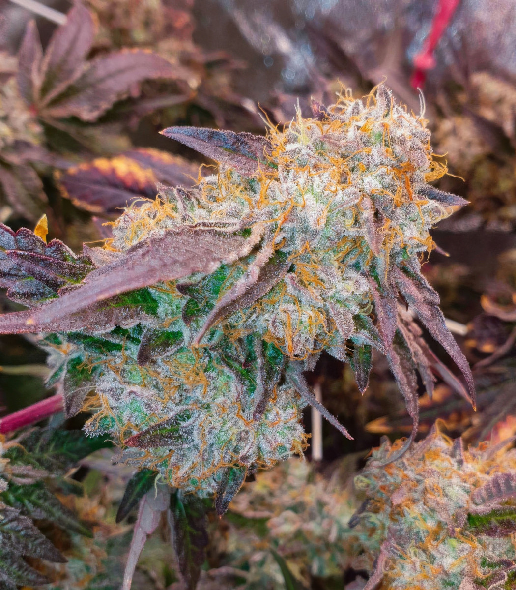 Где-то 50 % фенотипов La Bomba, по мере приближения к моменту полного созревания, приобретают разные оттенки пурпура, а также яркие вкрапления огненно-оранжевых стигм. Оставшаяся половина может дойти до харвеста в привычном зеленом убранстве, если искусственно не погрузить растения в прохладные условия с понижением ночных температур. Но какого бы цвета ни оказался урожай, в любом случае он порадует внушительным слоем кристаллических трихом на поверхности массивных бутонов общим весом в 500 - 550 г/м².