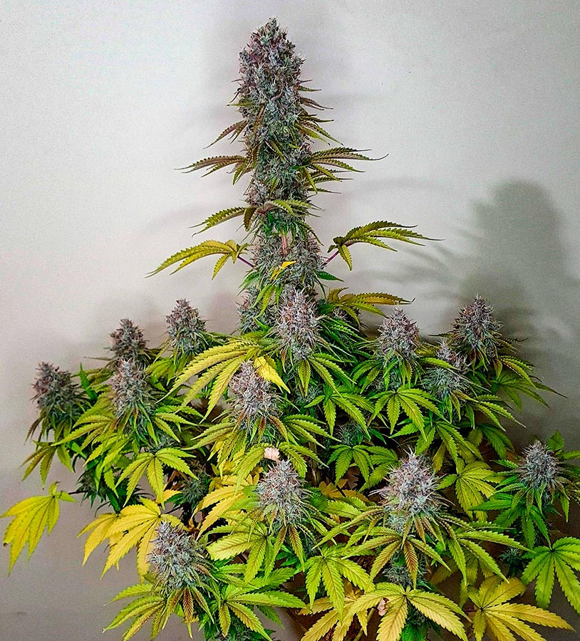 Сорт Pink Rozay – универсальный гибрид, который с комфортом можно выращивать как в помещении, так и на открытом воздухе. Растение энергичное и крепкое, растет компактным кустом и редко в высоту превышает отметку в 110-120 см. На нем формируются массивные, плотные бутоны с оранжевыми пестиками и густым налетом сверкающих трихом. Ближе к сбору урожая они приобретают потрясающий внешний вид, окрашиваясь в разные оттенки фиолетово-красных тонов. Такой яркий кустик обязательно станет настоящим центром внимания на любой грядке или оранжерее.
