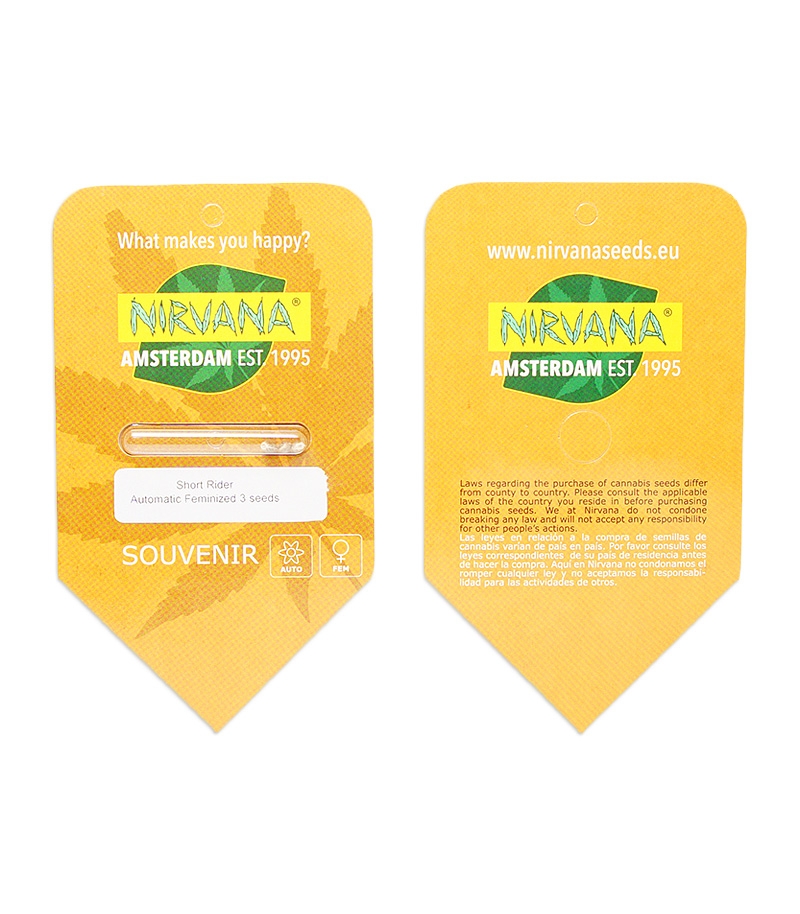 Семена конопли Short Rider Auto от Nirvana. Хорошо чувствует себя даже в ограниченном пространстве – в шкафах, балконах и т.п. В индоре цветет около 50 дней.