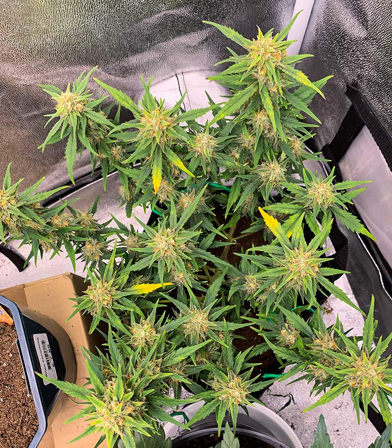 Ничуть не сложнее и даже результативнее будет выращивание в закрытых помещениях. Кусты можно высаживать в субстрат, почвенную смесь или гидропонную установку. В любом случае рост будет быстрым и продуктивным. Небольшая высота позволяет выращивать автоцвет в небольших палатках без применения тренировок, а с помощью LST-подгиба можно провести цикл даже в неприметном стелс-боксе. На харвесте растения принесут от 350 до 400 г соцветий с 1 квадратного метра рабочей площади. Если где-то неподалеку находятся бдительные соседи, то лучше прибегнуть к использованию угольного фильтра, дабы резкий аромат не привлек внимание их чутких носов.