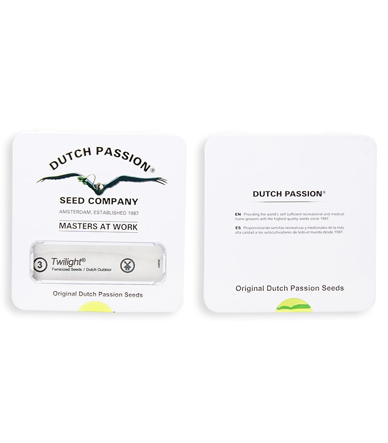 Сорт Twilight обладает пряным земляным вкусом с кислыми нотками. Более всего подходит для вечера. Эффект можно охарактеризовать как бодрящий, сканковый, очень сильный. Twilight помогает снять хронические боли и лечит артрит. Уровень содержания ТГК колеблется от 10% до 15%.
